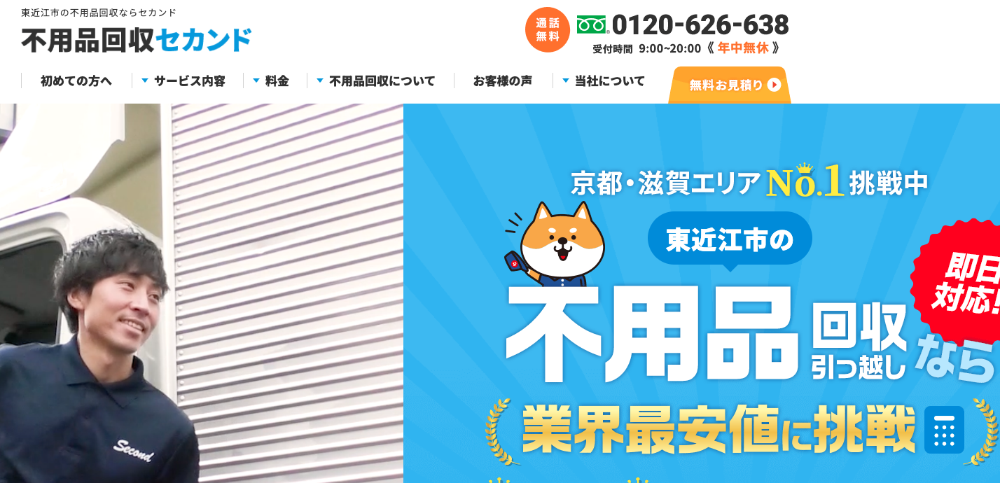不用品回収セカンドは、京都・滋賀を中心に展開する地域密着型の不用品回収専門業者です。不用品の仕分けを徹底的に行いリサイクル率を向上させることで廃棄コストを大幅に削減し、競合他社よりも安価なサービス提供を実現しています。
