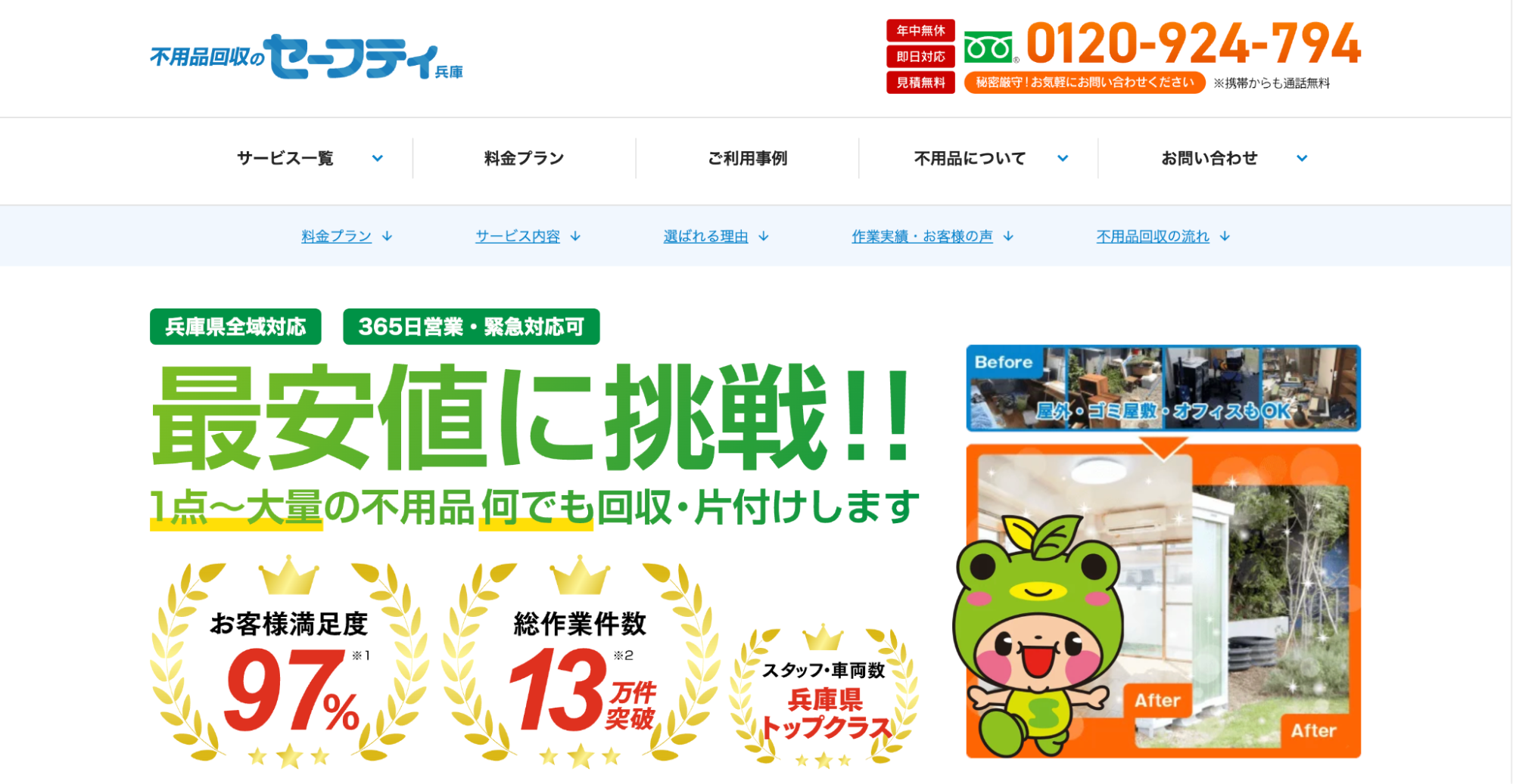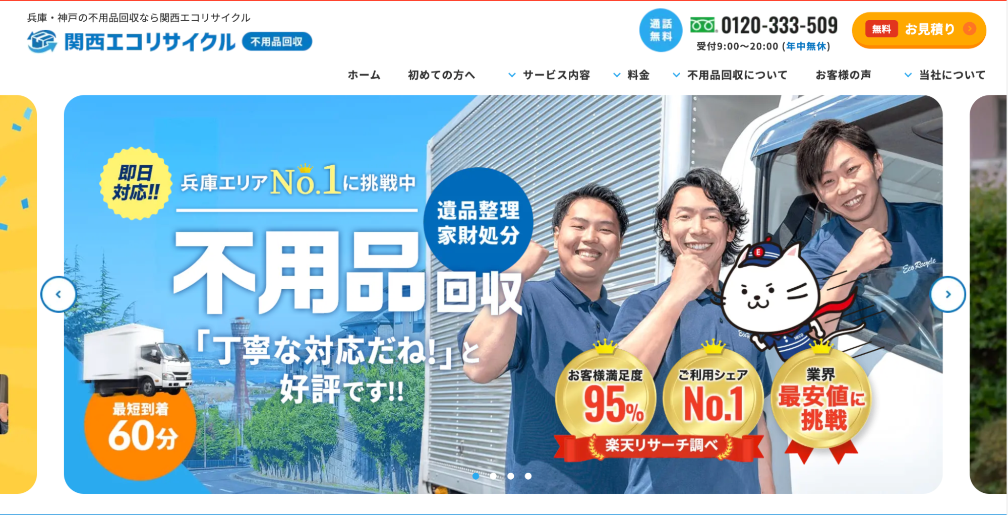低価格の理由は、回収した不用品の90%をリサイクルに回しているためです。また、不用品の買取も実施しており、お客さま目線に立ったサービスが魅力となっています。
