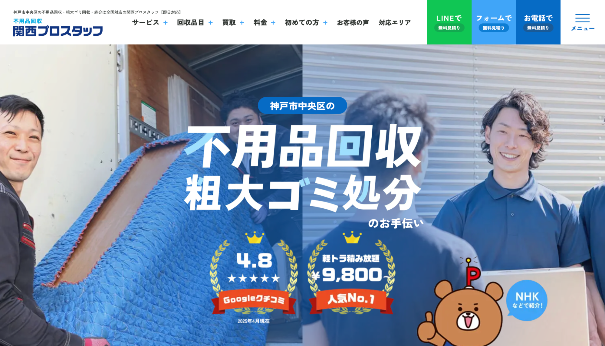 関西全域に対応する不用品回収・単身引越し業者です。