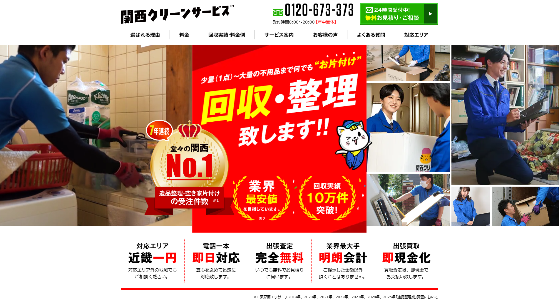 関西クリーンサービスは、顧客リピート率92%を誇る、お客さま満足度が高い不用品回収業者です。女性スタッフも在籍しているため、女性のお客さまからも「相談しやすい」と好評を得ています。
