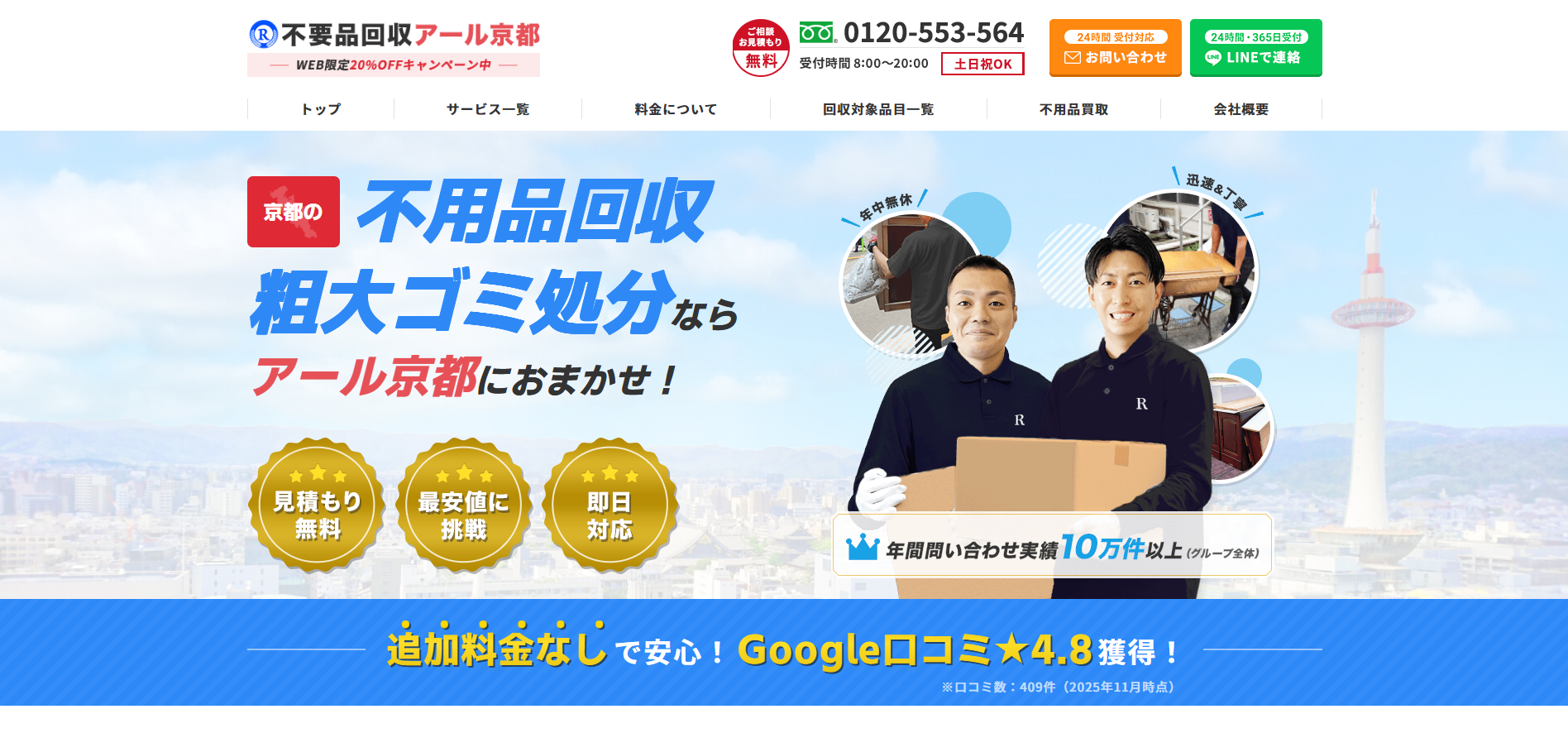 ここでは京都市北区でおすすめの不用品回収業者を紹介します。業者選びで悩んでいる方は、ぜひ参考にしてみてください。