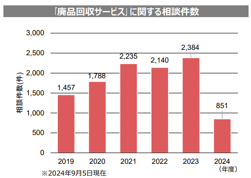 以下は廃品回収サービスにおけるトラブルの相談件数を表した図です。